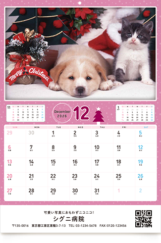 診察、予防、健康診断、爪切りなどで来院された方に、2026年のカレンダーをお渡しします!